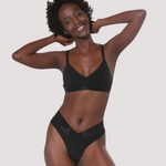 Classic thong underwear design with a flattering elastic free front cross waistband. With this style, you've got options. This waistband can sit higher or lower on your waist. Designed with an Organic Cotton gusset for optimal natural absorbency and breathability. Crafted with a wider crotch for added security and to avoid the unwanted "lip-slip". Made from soft, breathable fabric keeping you cool and dry all day long.