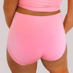 High-Waist Boyshort underwear with comfortable fold-over elastic-free waistband and full coverage seat. Designed to sit comfortably at or above the belly button. Buttery soft, breathable 4-way stretch MicroModal fabric. Designed to stay put, and not ride up for all day (or night) comfort. Waistband smooths you out, and feels like a hug on your tummy. 🤗