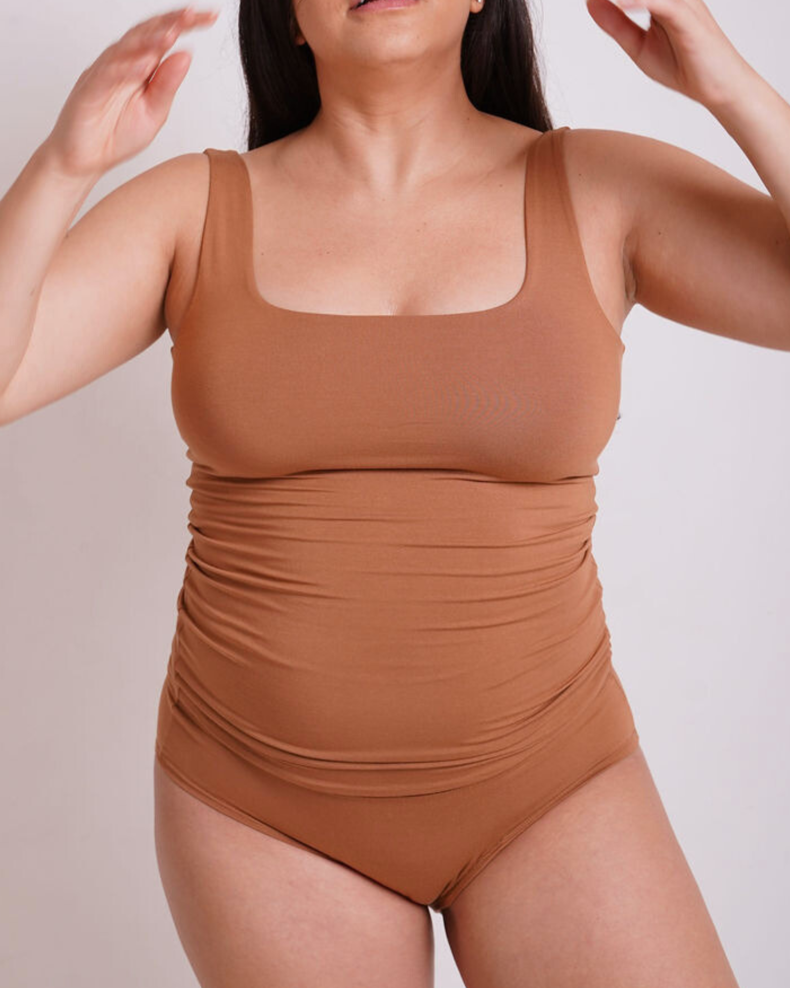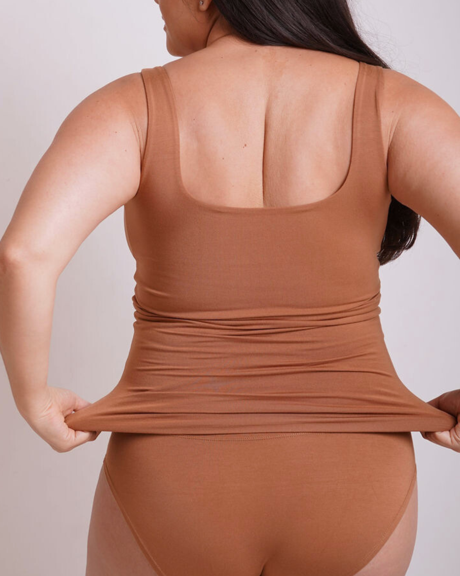 The Double-Lined Everywhere Long Tank: The longest version yet, designed for those who want full coverage without compromise. Made from the same buttery soft, weightless micro modal fabric you know and love, this tank provides ultimate coverage— no more unexpected tummy peeks when you lift your arms. 🙌 Perfect for tall girls, tuck-in lovers, and anyone who wants a sleek, smoothing, seamless look that stays put. With light-impact support, this tank is breathable, smoothing, and braless-approved. Your go-to for all-day comfort, from errands to evenings out.