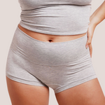 High-rise boyshort with a smooth, elastic-free waistband and full coverage seat. Updated design features a closed top gusset seam with more coverage for added support. Stays put without riding up, making it a go-to for everyday wear, bedtime, maternity, and postpartum.